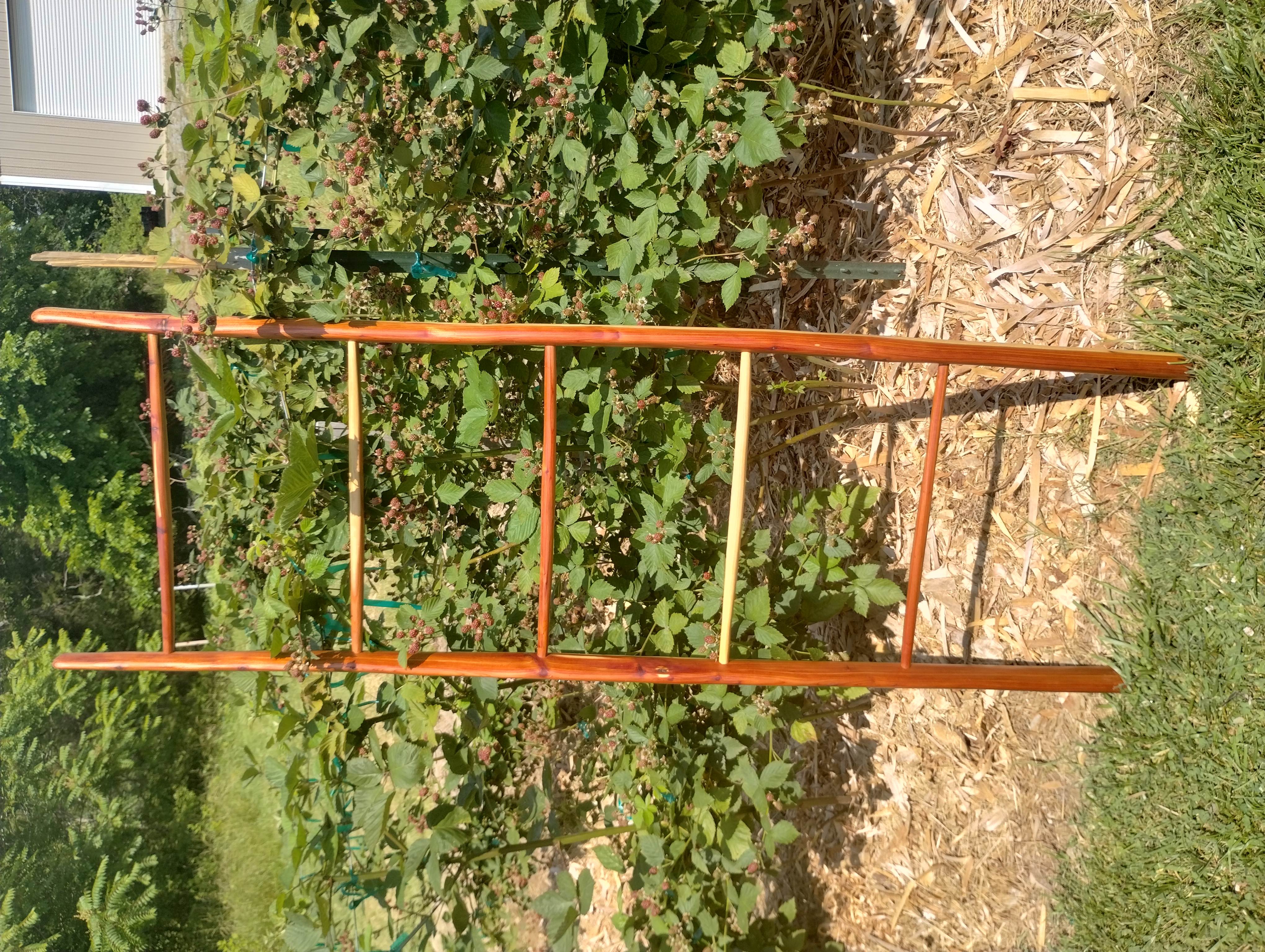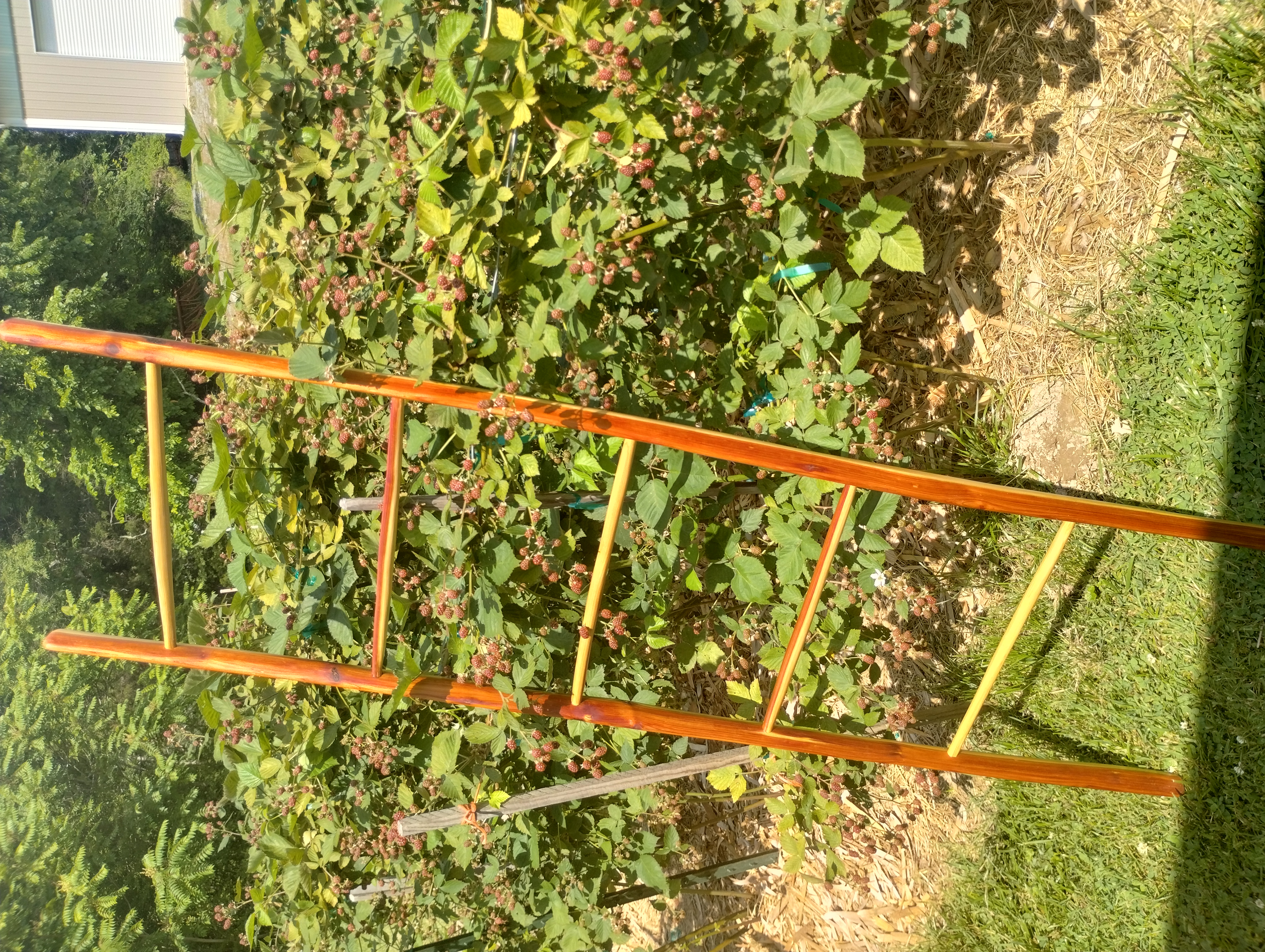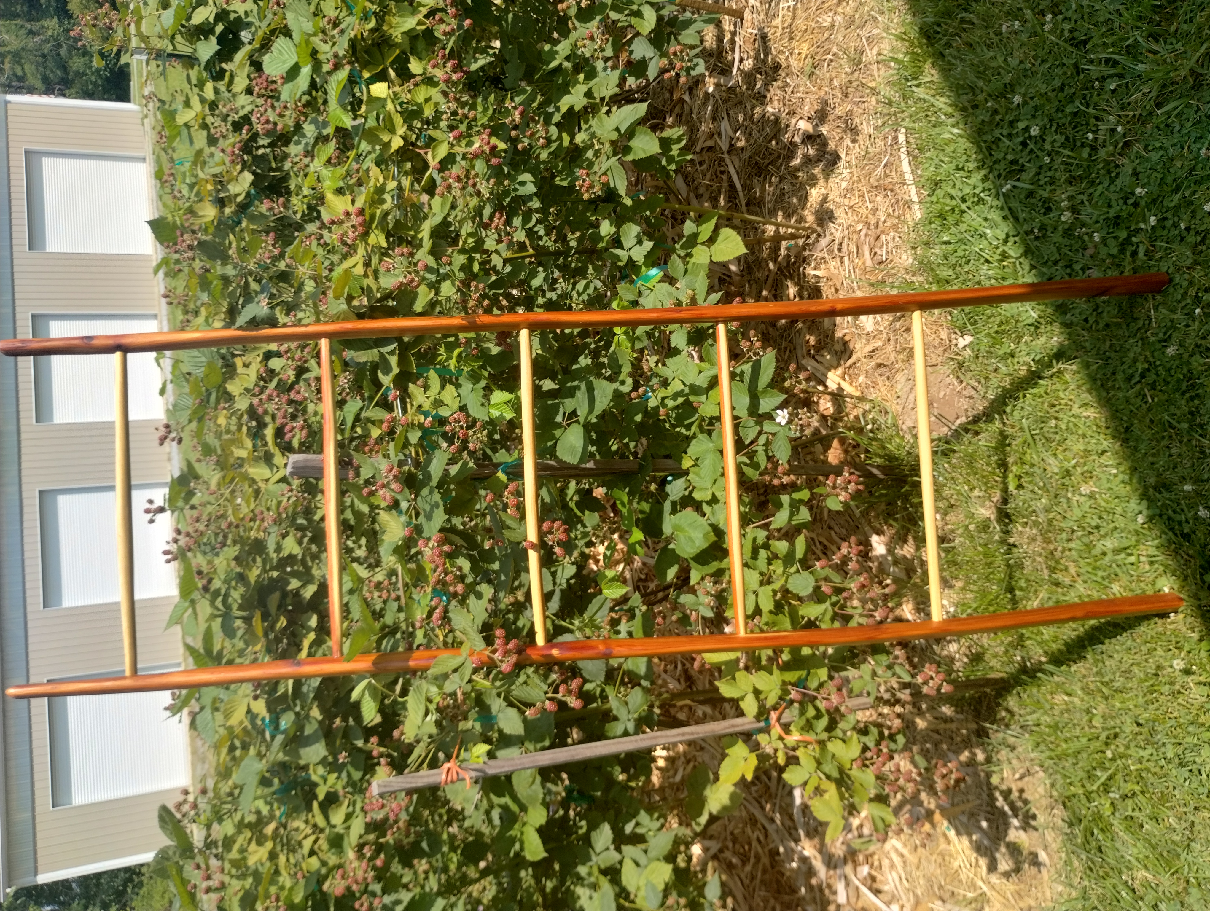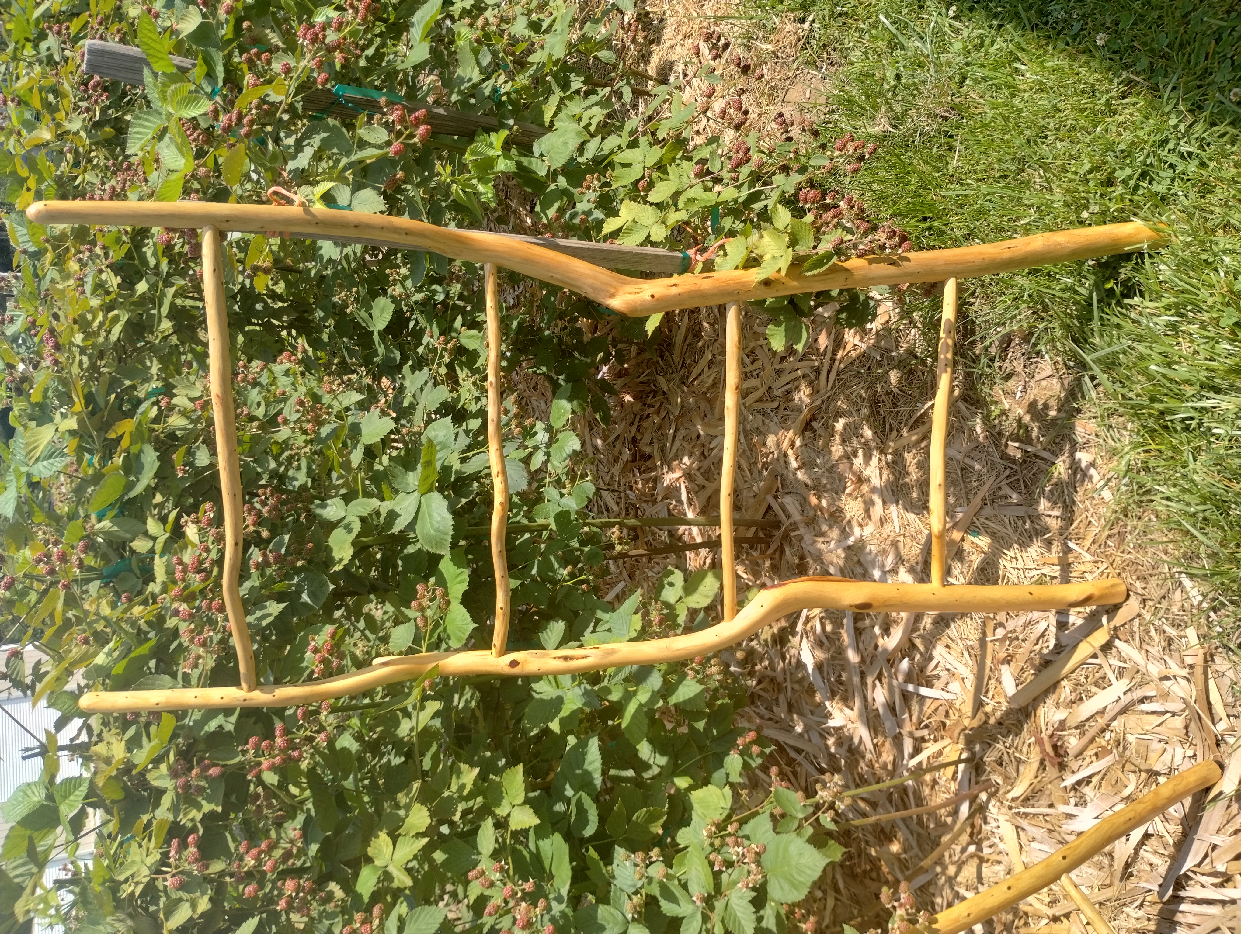 Green woodworking making drying ladders and small benches for bath and bed and hand carved spoons. There is also a collection of medevil style Red Cedar Boxes and such that are built with riven wood. All work done with hand tools except drilling mortises in ladders with a power drill.